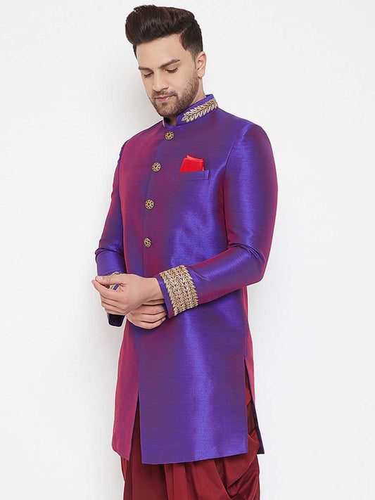 Vastramay Men's Purple Silk Blend Sherwani Top