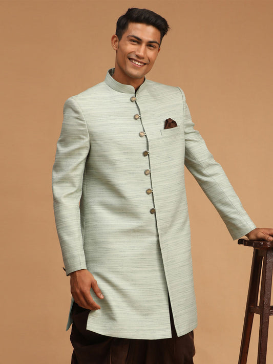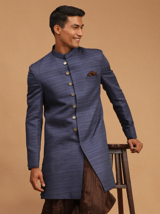 Vastramay Men's Blue Cotton Silk Blend Sherwani Set