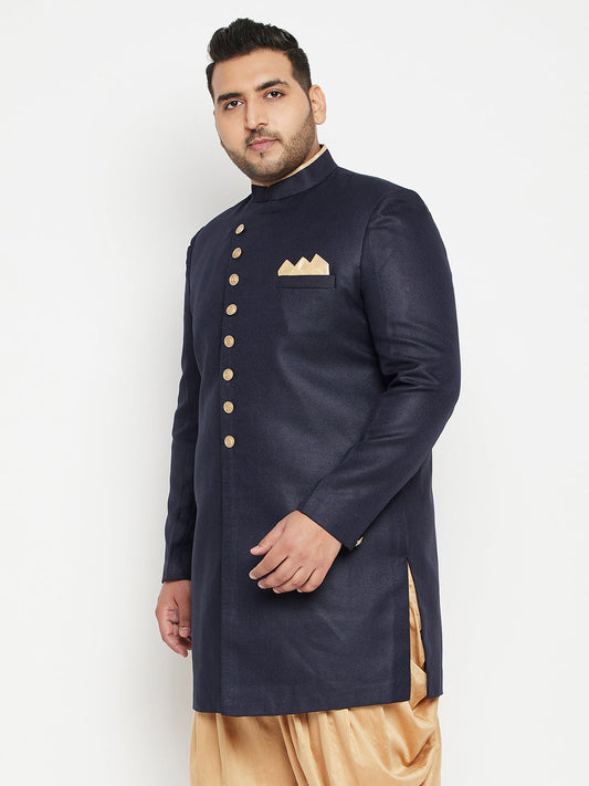 Vastramay Men's Plus Size Navy Blue Slim Fit Sherwani Only Top