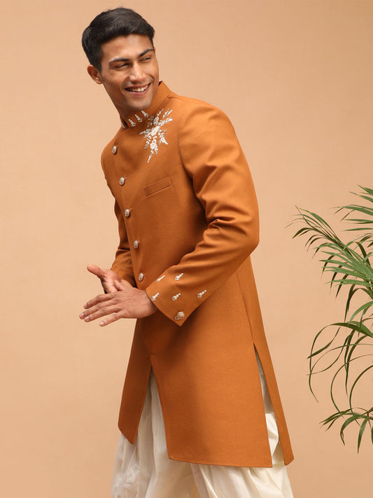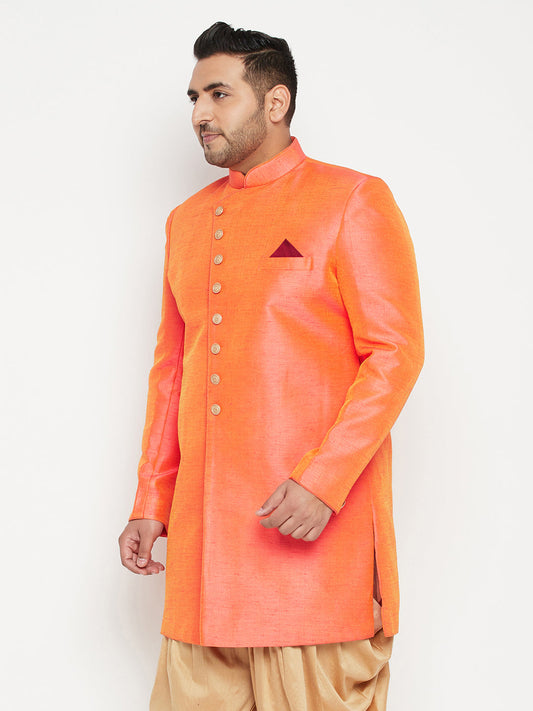 Vastramay Men's Plus Size Orange Slim Fit Sherwani Only Top