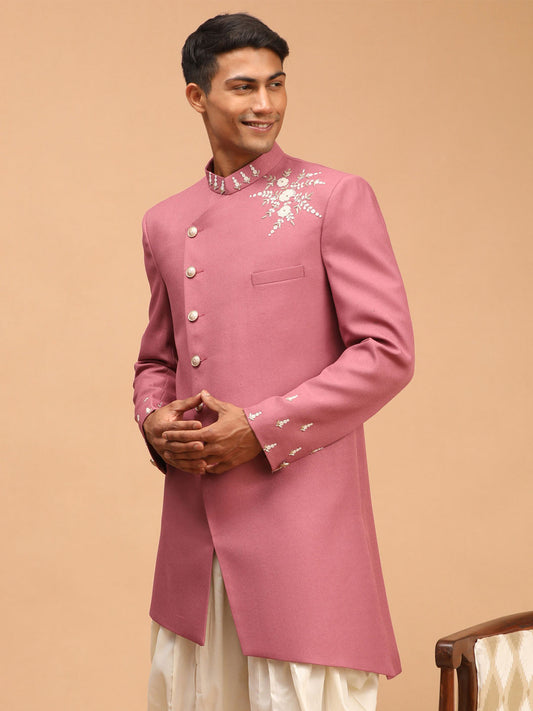 Vastramay Men's Peach Sequined Indo Western Sherwani Set