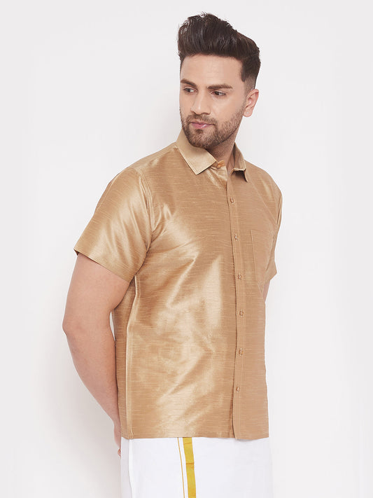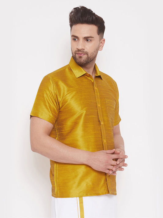 Vastramay Men's Gold Silk Blend Ethnic Shirt