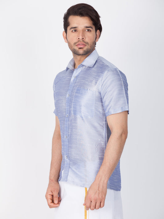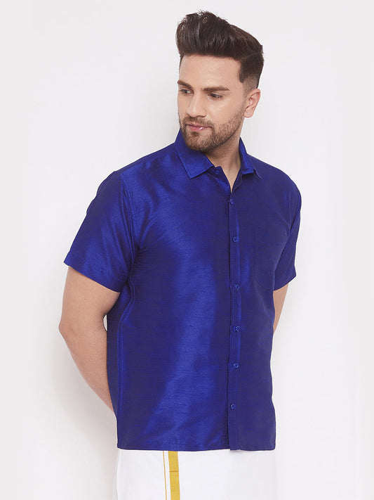 Vastramay Men's Blue Silk Blend Ethnic Shirt