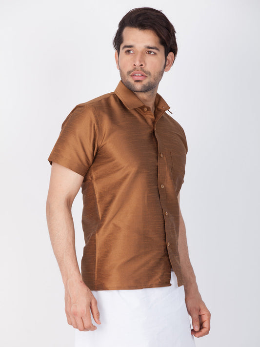 Vastramay Men's Brown Silk Blend Ethnic Shirt
