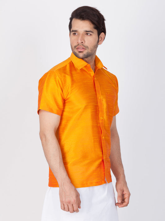 Vastramay Men's Orange Silk Blend Ethnic Shirt