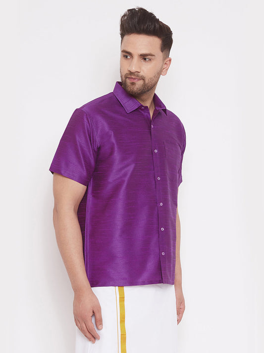 Vastramay Men's Purple Silk Blend Ethnic Shirt