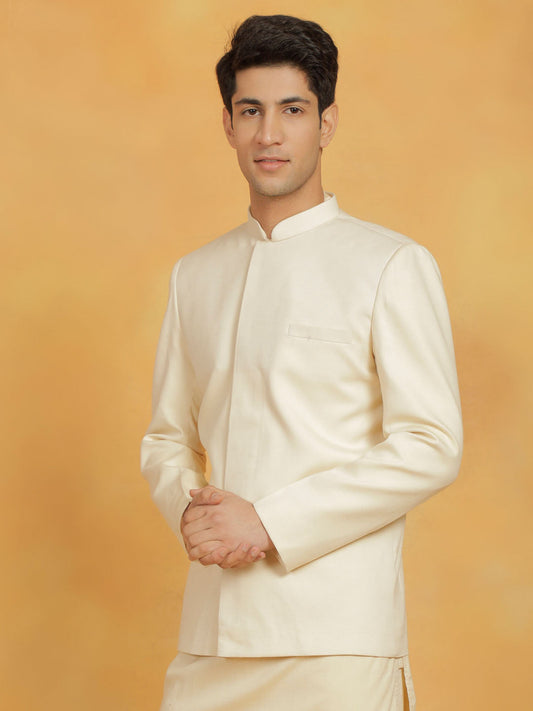 Vastramay Men's Cream Cotton Linen Jodhpuri