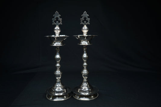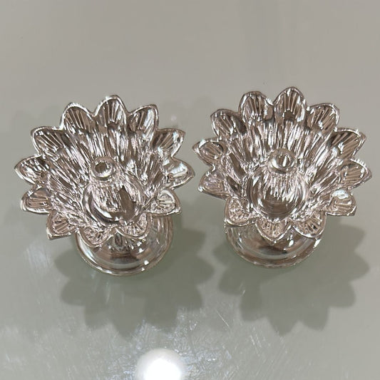 Pure Silver Fancy Diya Pair Leaf Pattern