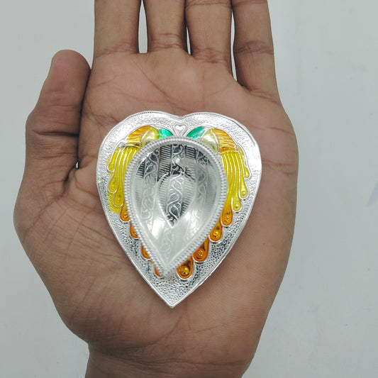 Pure Silver Fancy Diya Peepal Leaf Pattern