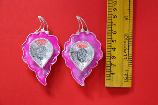 Pure Silver Fancy Diya Leaf Pattern In Pink