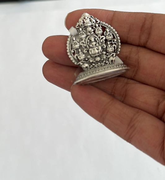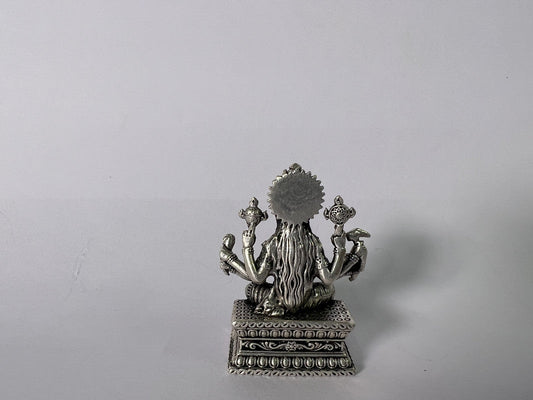 A silver Laxmi idol typically refers to a figurine or statue made from silver by the Hindu goddess Lakshmi. Lakshmi is the goddess of wealth, fortune, and wealth in Hindu mythology, and she is often depicted with four arms, seated on a lotus flower, holding lotus buds, and showering prosperity coins.