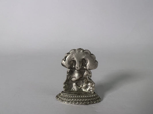 Silver Ganesh typically refers to a depiction of Lord Ganesh, the Hindu deity revered as the remover of obstacles, made from silver. These representations are often used in worship and as decorative items in homes or temples. Ganesh idols or figurines made from silver are popular due to their aesthetic appeal and cultural significance in Hinduism. They can range from small statues for personal altars to giant sculptures for public display during festivals and ceremonies.