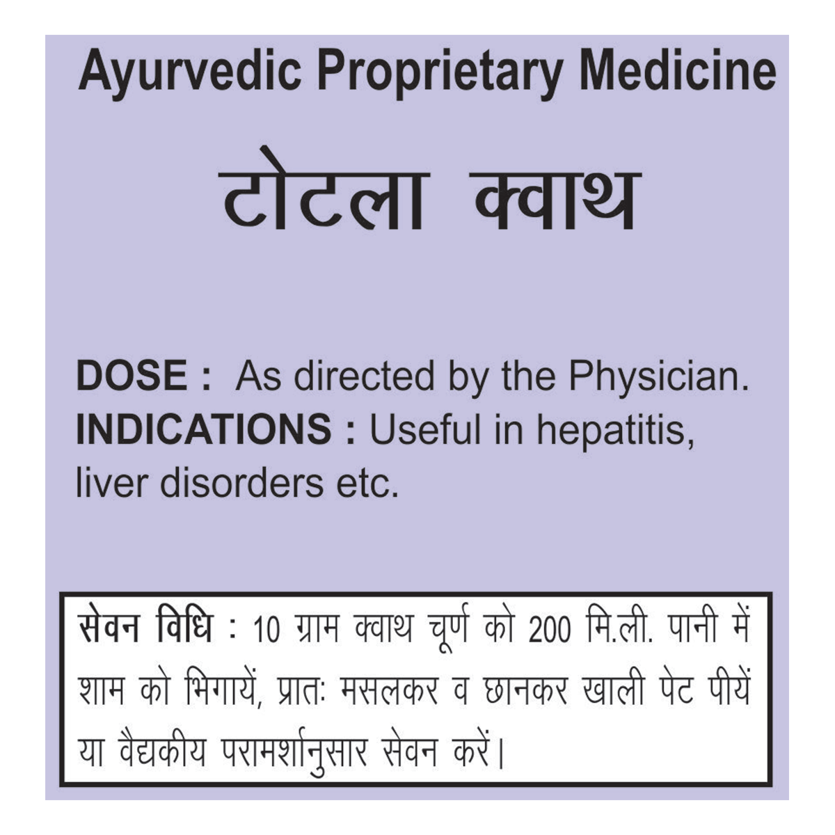 Patanjali Divya Totala Kwath is Beneficial in hepatitis, jaundice, and liver-related ailments. A mix of ancient formulae with specific qualities. If the taste of any kwath is acerbic, then mix honey or any other sweet item if you are not diabetic. Be alert that honey shall be mixed when the decoction is cool and not hot.
