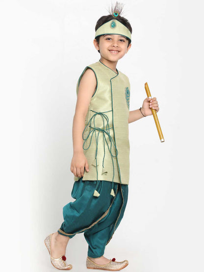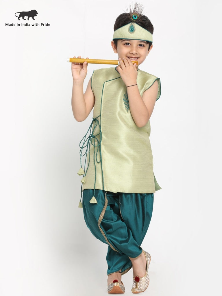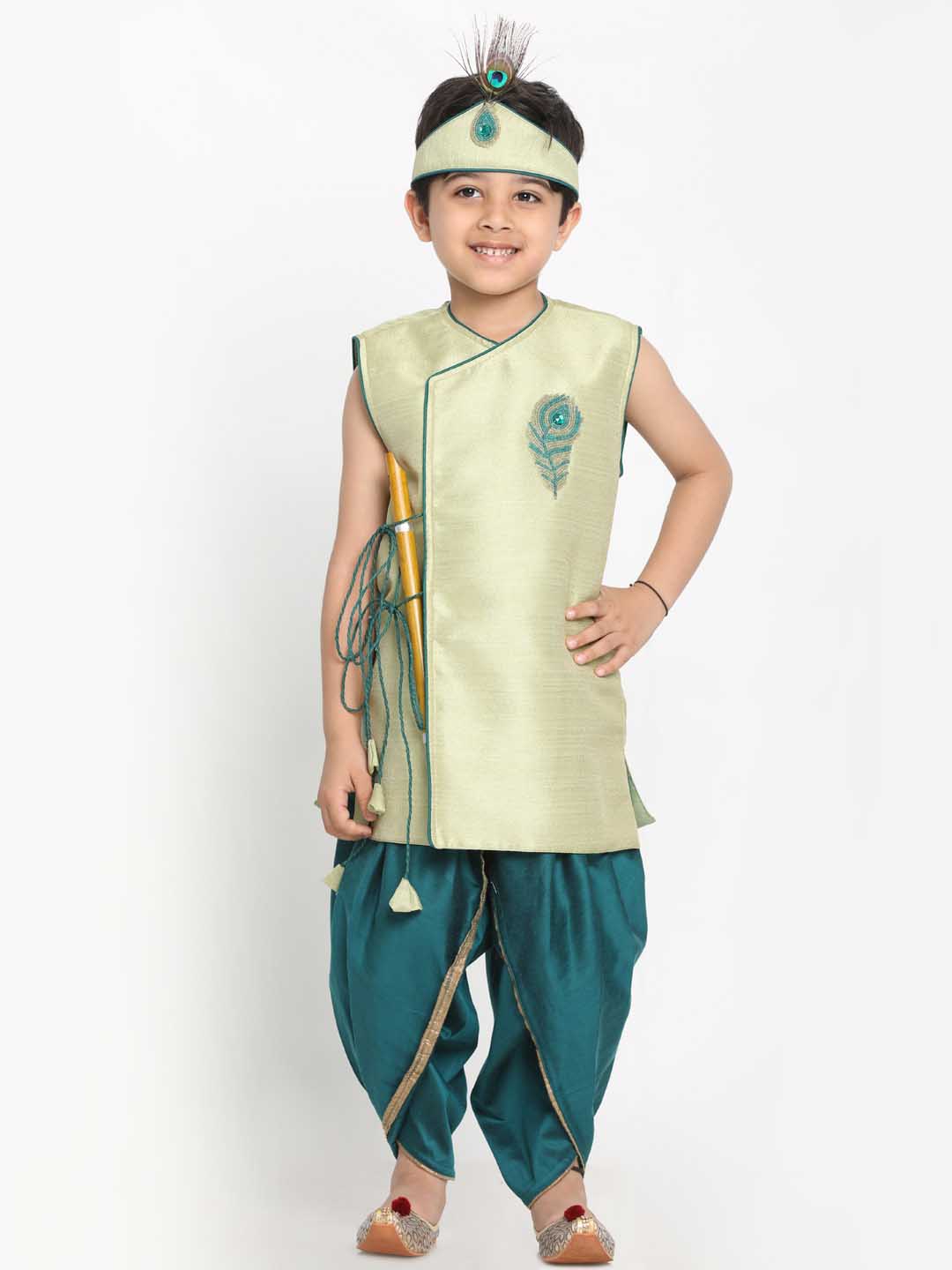 Embrace your inner Krishna with this traditional green kurta and dhoti set. Perfect for cultural celebrations, religious ceremonies, or adding a touch of Indian heritage to your wardrobe. The comfortable cotton fabric keeps you cool, while the classic design exudes timeless elegance.