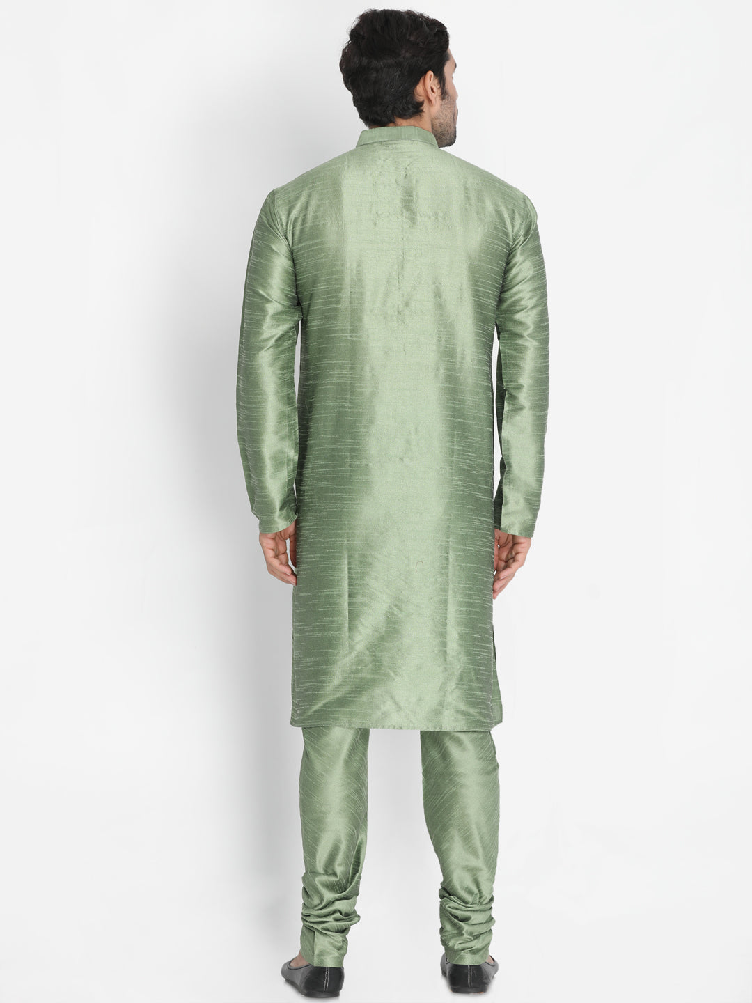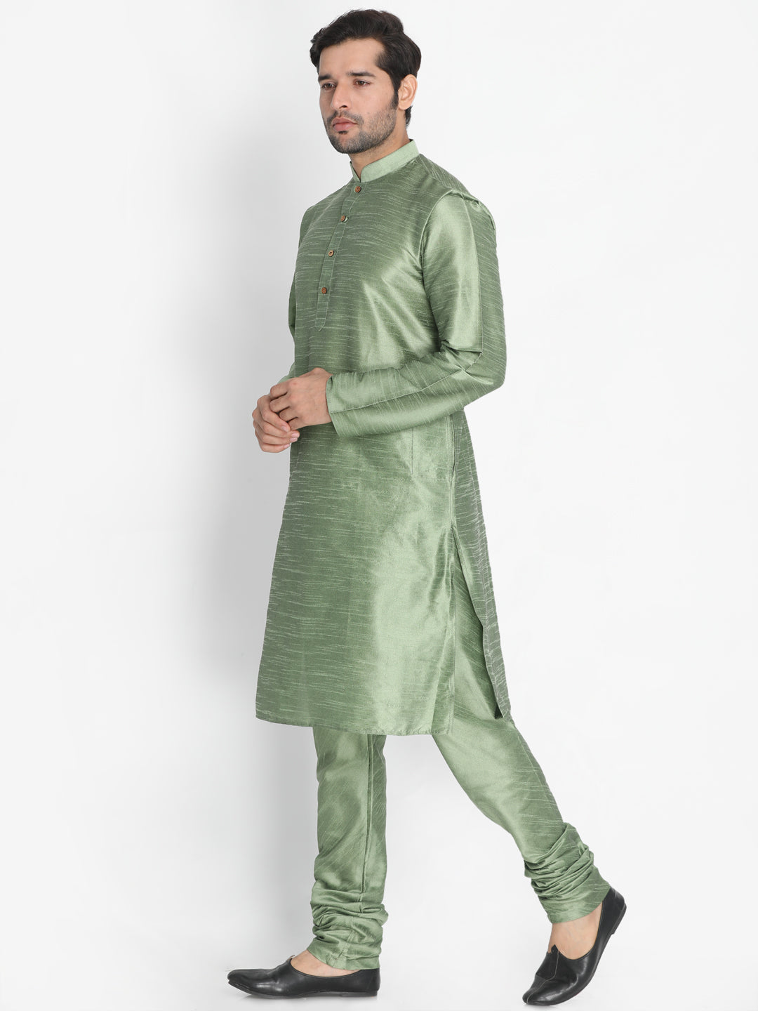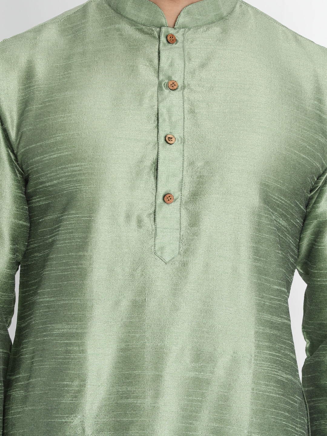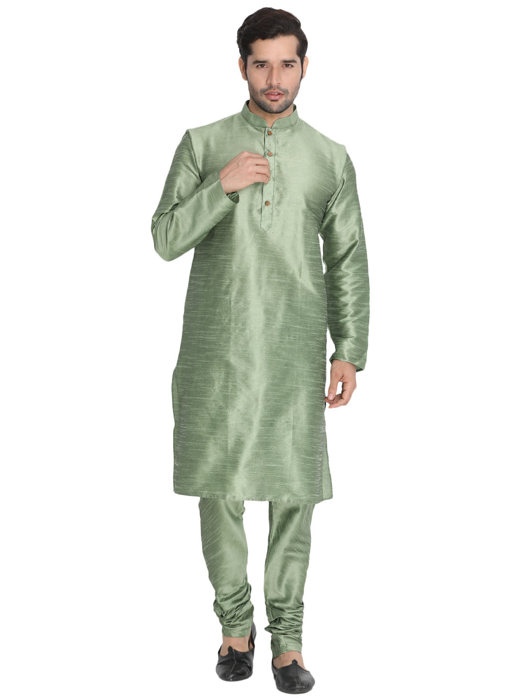 VM BY VASTRAMAY Men's Light Green Cotton Silk Blend Kurta and Pyjama Set