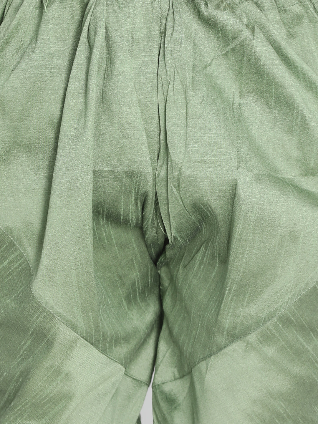 Vastramay Men's Light Green Cotton Silk Blend Kurta and Pyjama Set