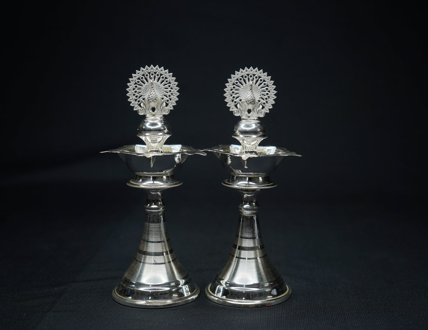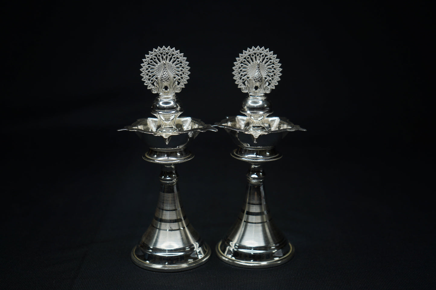 Pure Silver Diya With Peacock 104g Pair