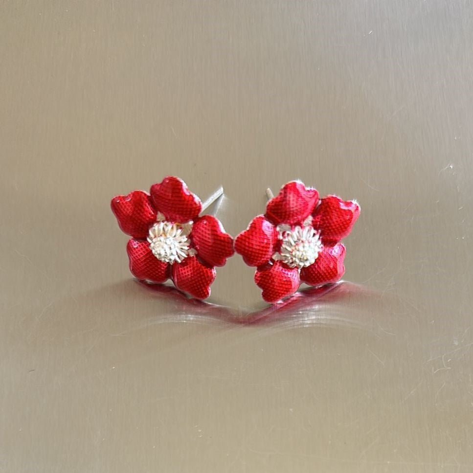 Pure Silver Enamel Red Flowers |Pack of 2