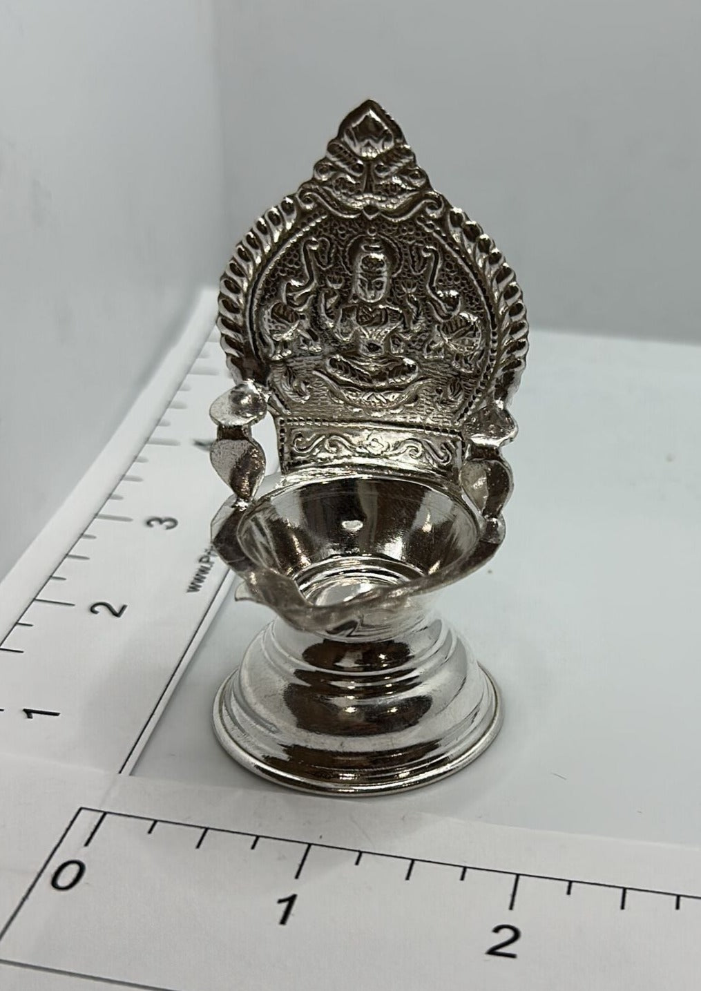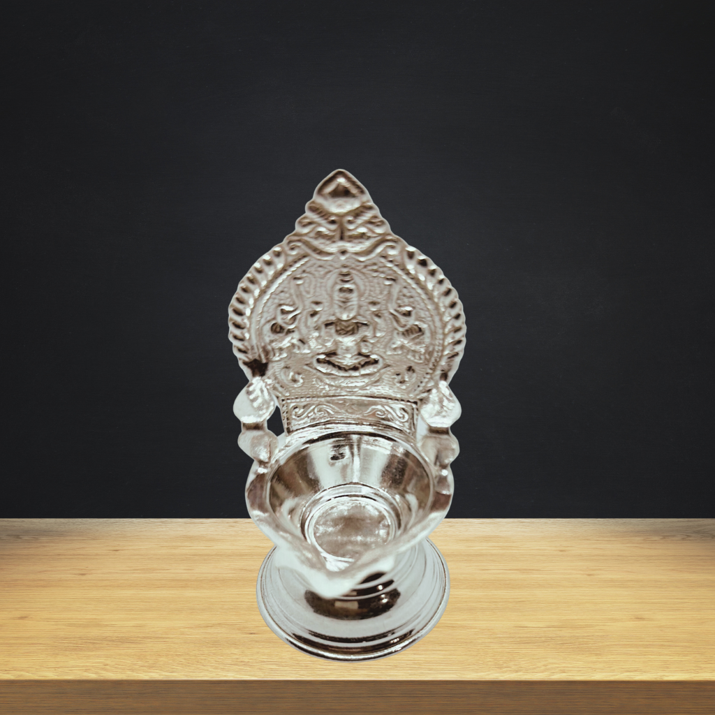 Pure Silver Kamakshi Diya is made of 92.5% Silver Purity. Light up your home with this beautiful Diya. Such matchless items are used mainly for auspicious purposes, such as pooja to the almighty. They are made with Excellent Silver hardness and superior quality.