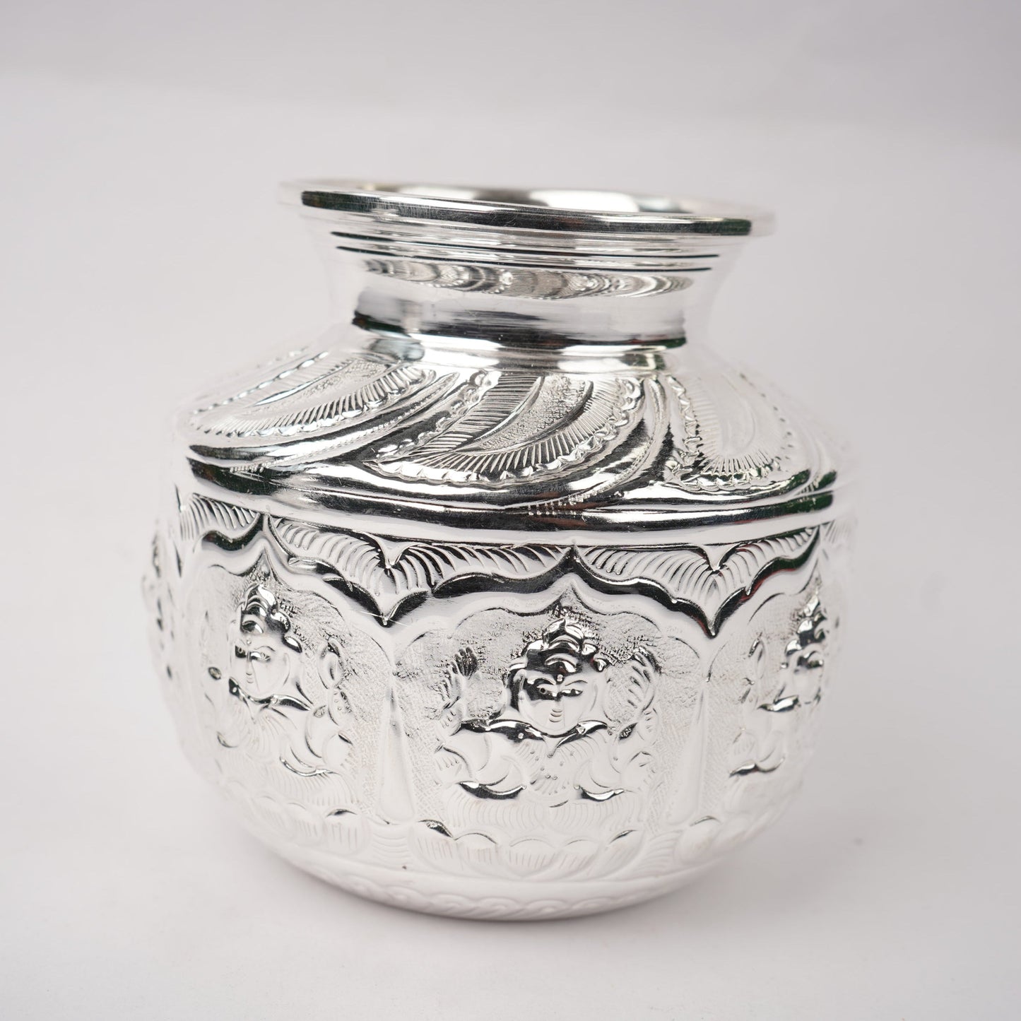 The Silver Large Kalasham is handmade of sterling silver and 92.5% silver purity; this Kalash retains its luster for many years. Bring home this beautiful Kalash Pot this festive season to make your special day more optimistic. It is made with Excellent Silver hardness and superior quality.