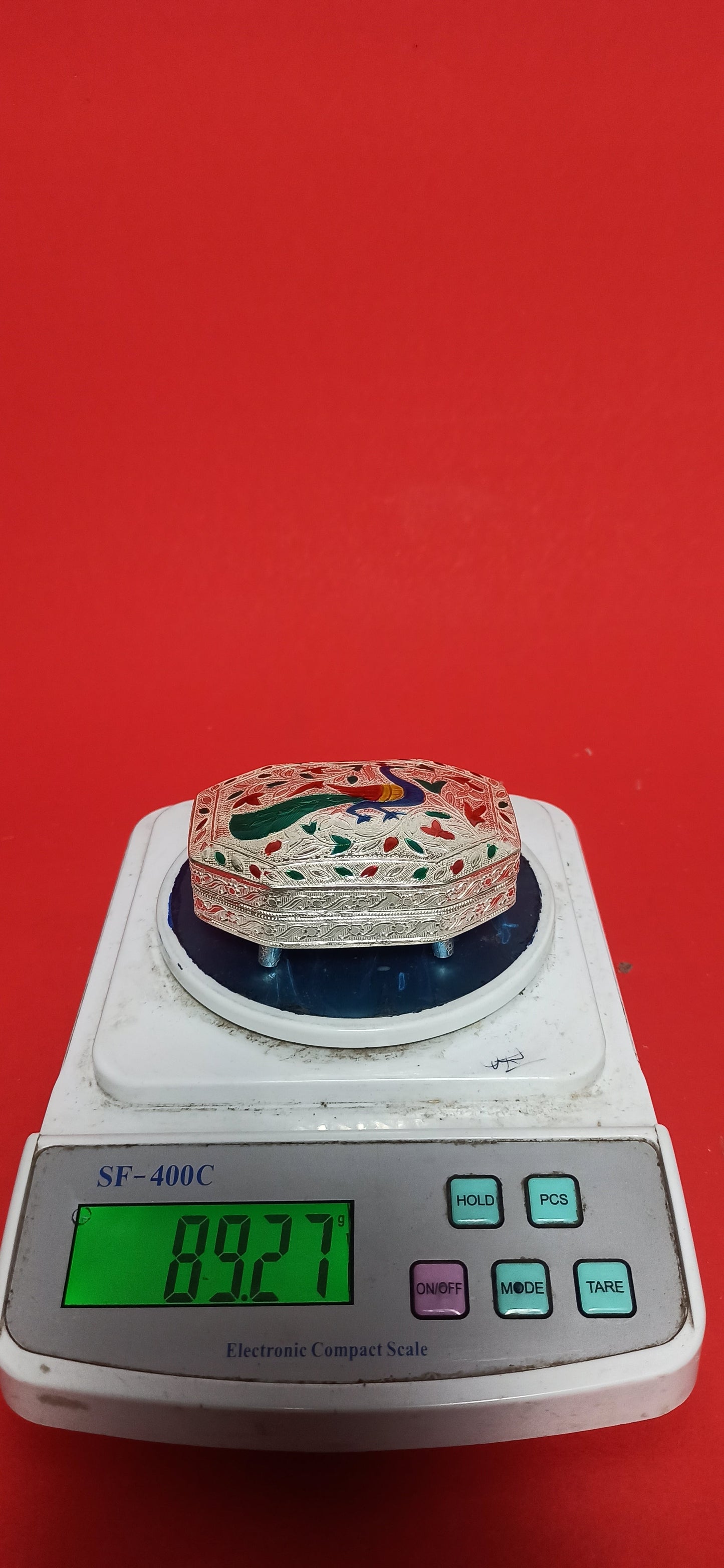 Pure Silver Peacock Octagonal Shaped Soap Box 89.3 g