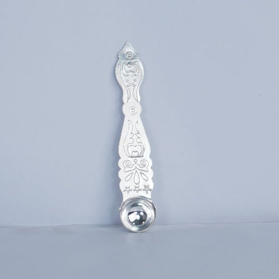Pure Silver Udharani for the pooja room. Pure silver Udharani spoon for the pooja room. This gives a very traditional look to your pooja room. This Pure silver Udharani set is an entirely handmade Spoon piece. It has a beautiful design engraved on it.