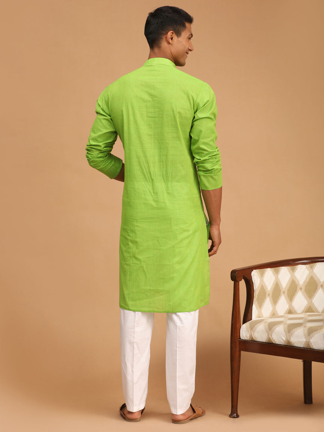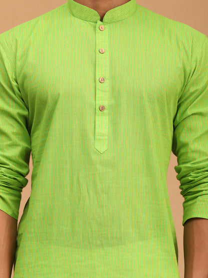 SHVAAS by VASTRAMAY Men's Green Cotton Handloom Kurta With White Pant Set