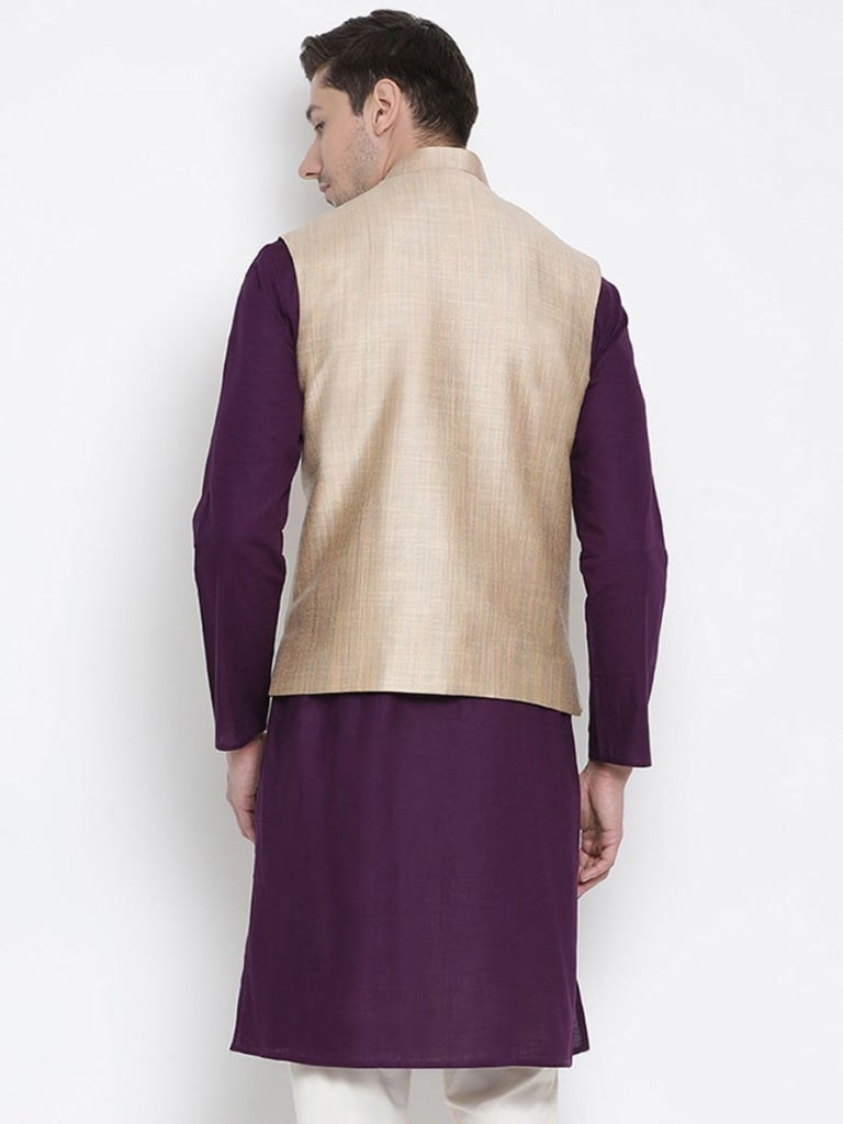 Features Of VASTRAMAY Men's Beige Cotton Blend Ethnic Jacket