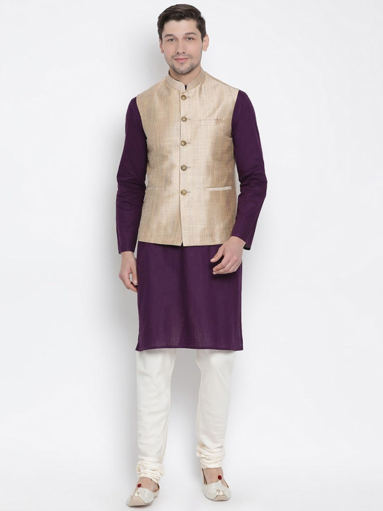 - It's always best to check the description of the specific jacket you're interested in on the Vastramay website or retailer's website for the most accurate information. You can search for "VASTRAMAY Men's Beige Cotton Blend Ethnic Jacket" to find more details.