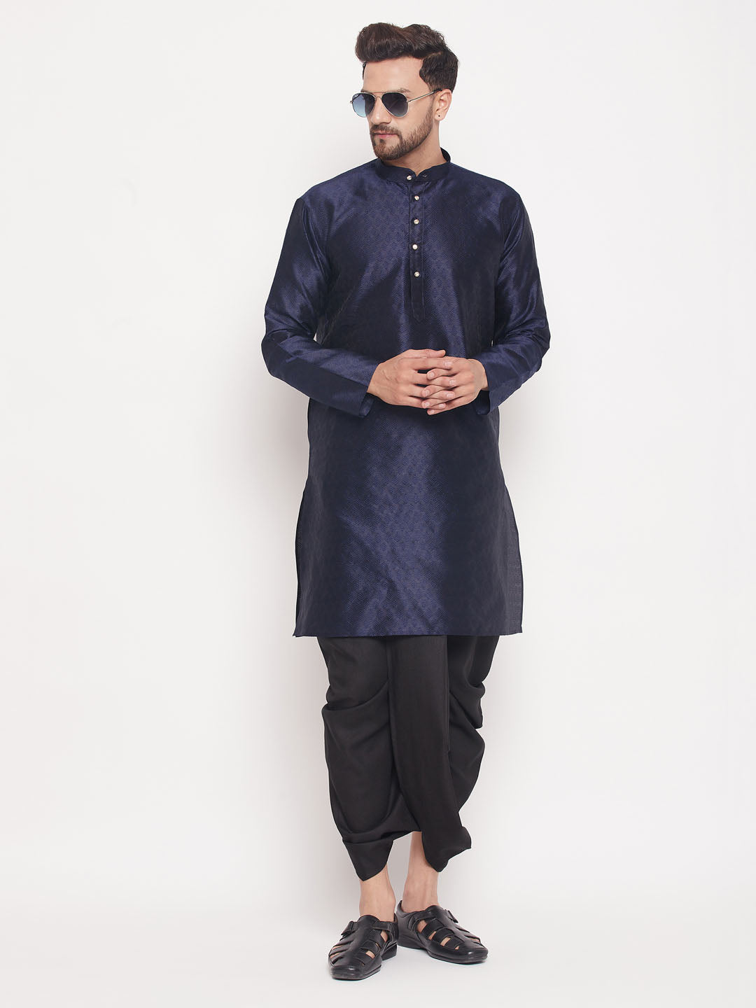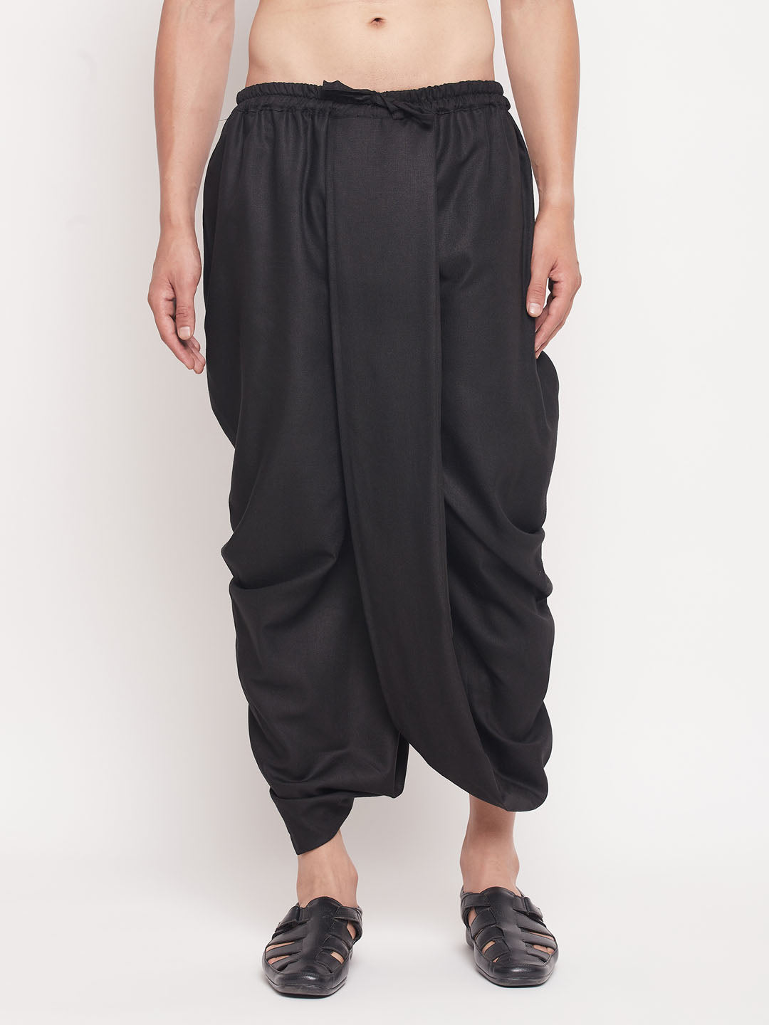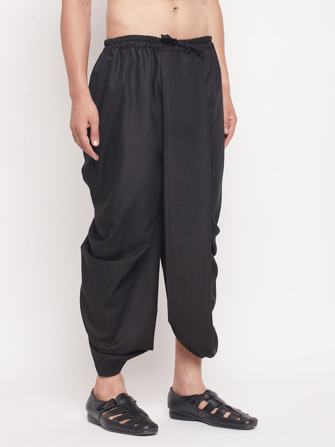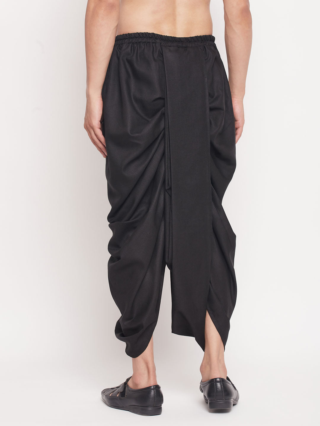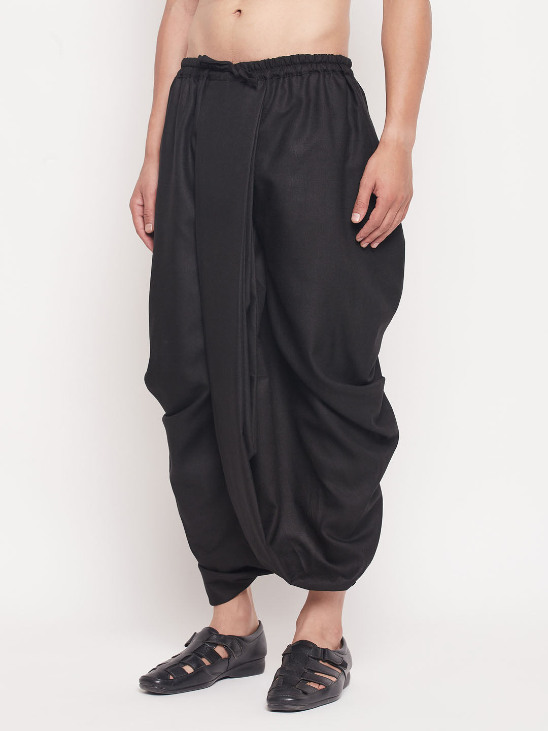 VASTRAMAY Men's Black Silk Blend Solid Pleated Dhoti