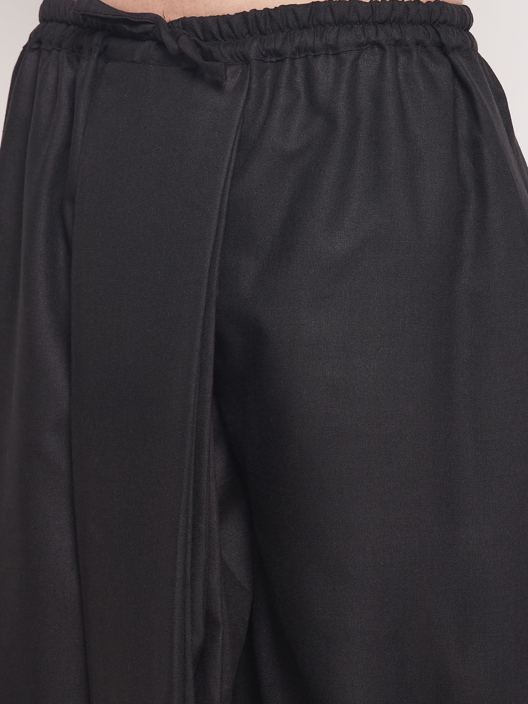 Vastramay Men's Black Silk Blend Solid Pleated Dhoti