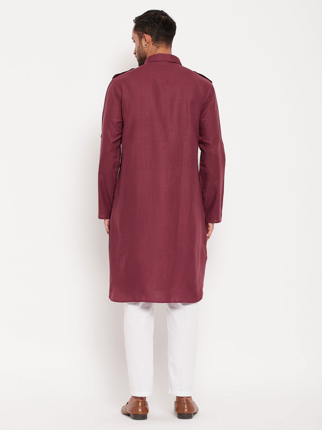 Vastramay Men's Purple Pathani Suit With White Pant Set