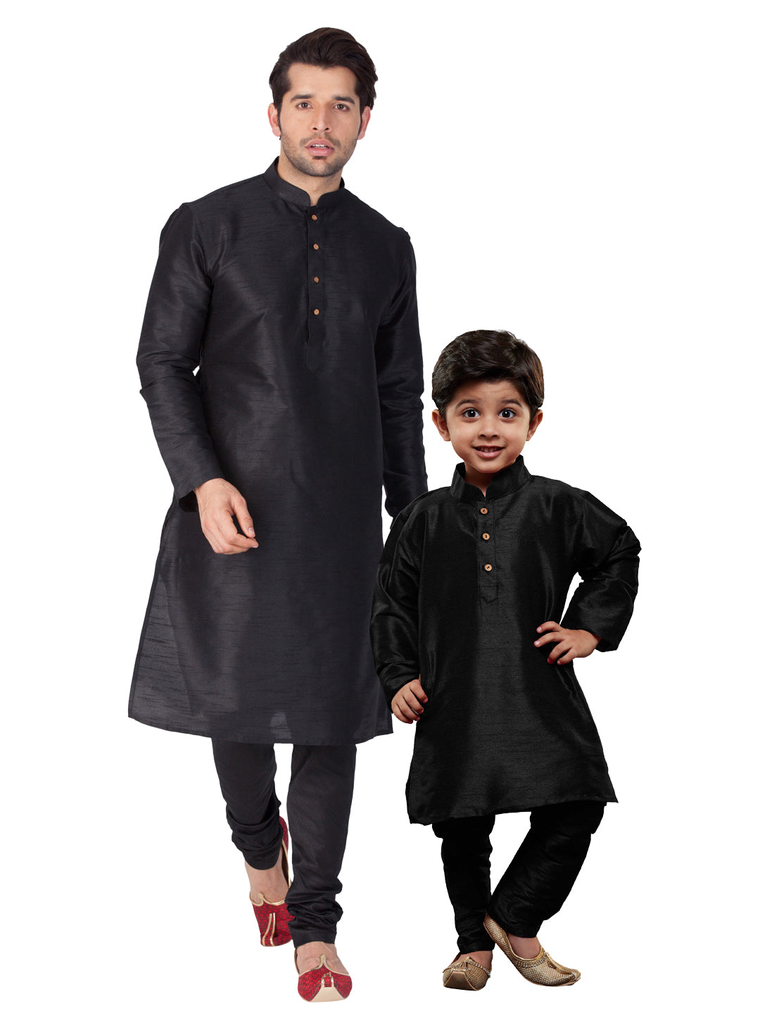 Vastramay Silk Blend Black Baap Beta Kurta Pyjama Set