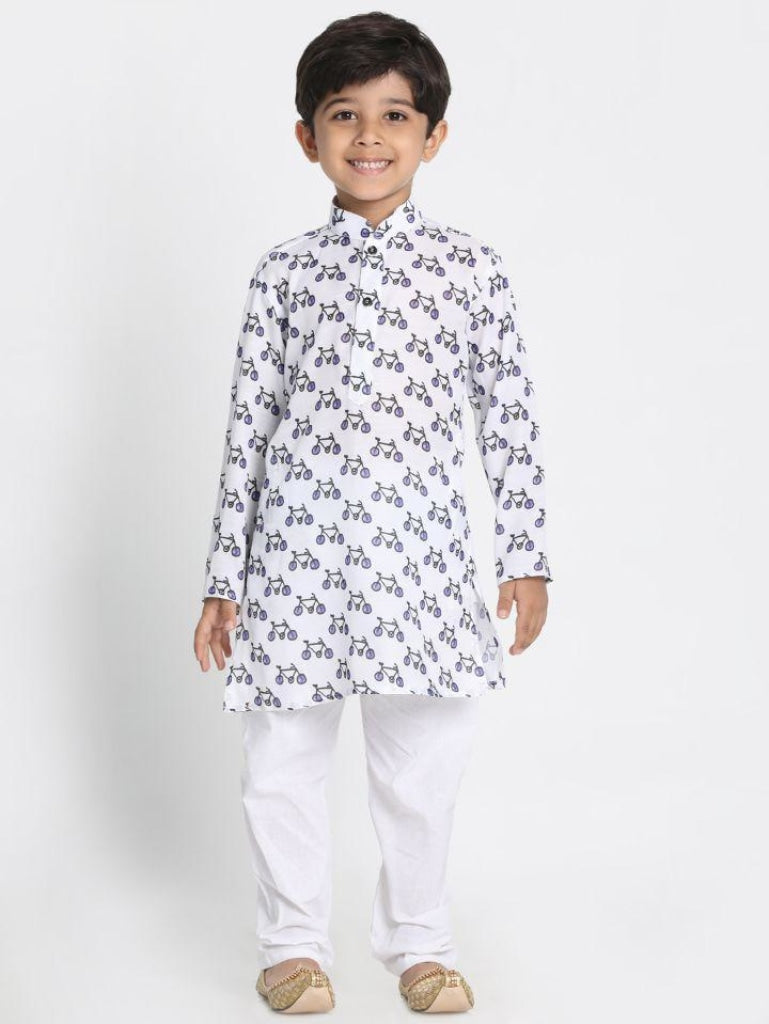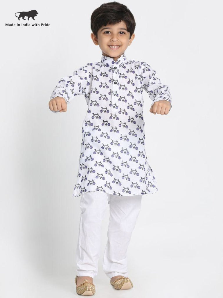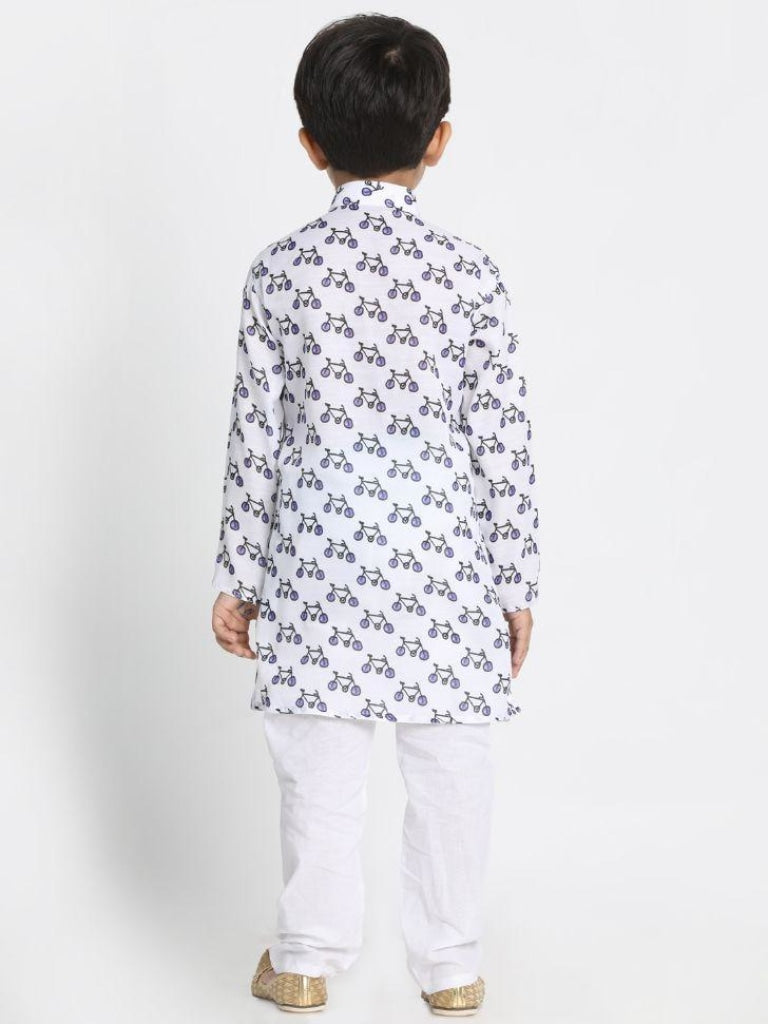 VASTRAMAY Boy's Cycle Print Kurta And Pyjama Set
