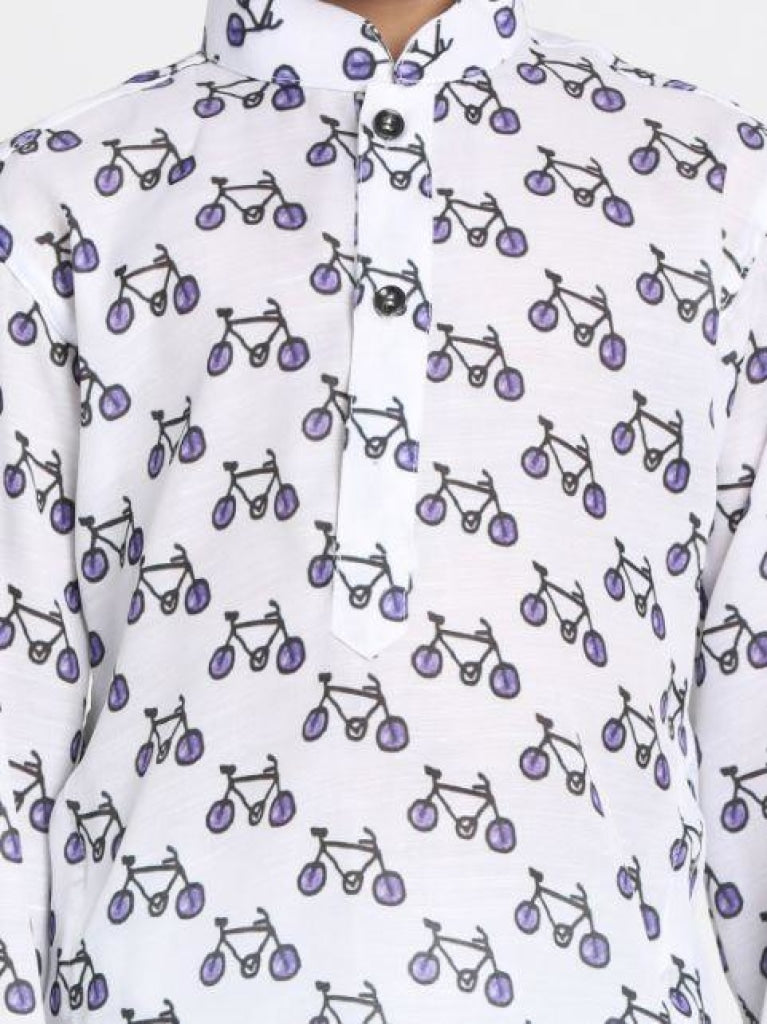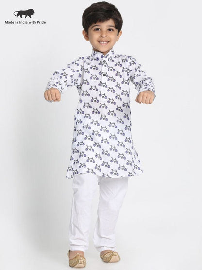 Vastramay Boy's Cycle Print Kurta And Pyjama Set